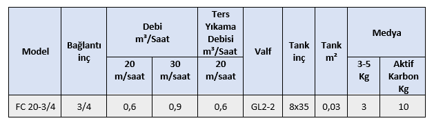 Watergold Su Aritma Sistemleri FC 20-3.4 (8X35) Model Endüstriyel Aktif Karbon Filtreleme Sistemi