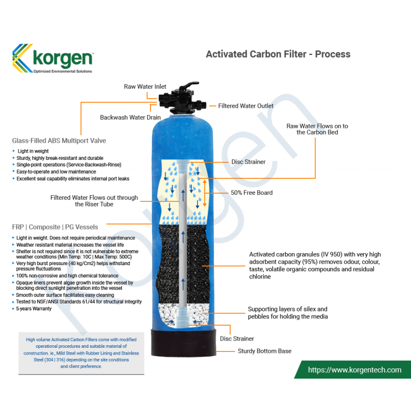 Aktif karbonun adsorpsiyon özelliği ile, sudaki molekül ve iyonları mineral gözenekleri vasıtası ile iç yüzeylerine doğru çekerek, suyun organik maddelerden arınmış, renksiz, kokusuz ve berrak bir şekilde olmasını sağlar.