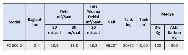 Watergold Su Aritma Sistemleri FC FC 600-2 (36X72) Model Endüstriyel Aktif Karbon Filtreleme Sistemi