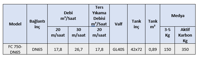 Watergold Su Aritma Sistemleri FC 750-DN65 (42X72) Model Endüstriyel Aktif Karbon Filtreleme Sistemi