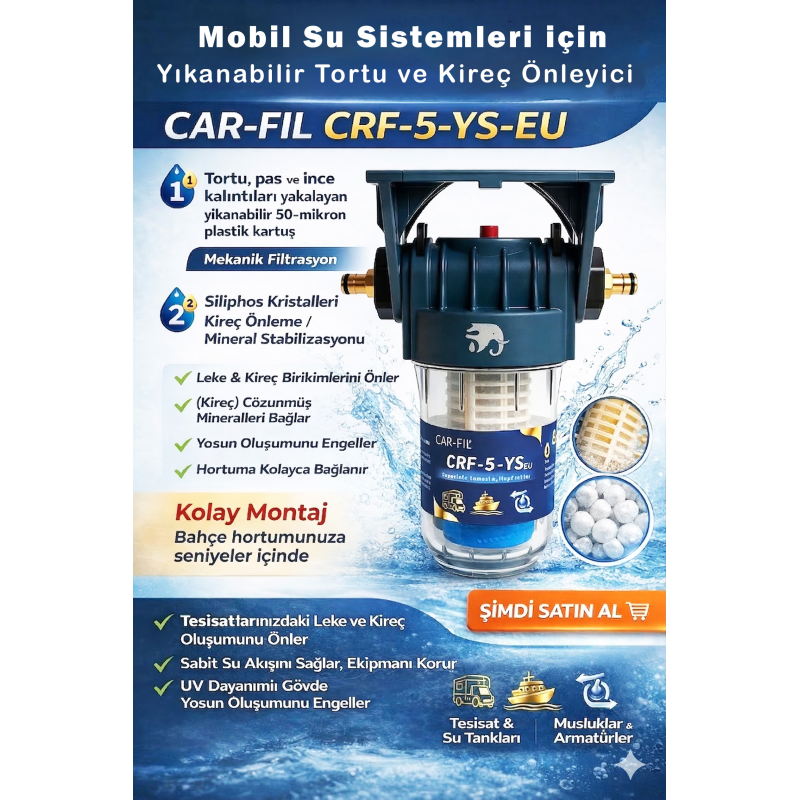 ???? CAR-FIL CRF-5-YS-EU, mobil su sisteminizi gittiğiniz her yerde temiz, verimli ve kireci azaltılmış halde tutar.