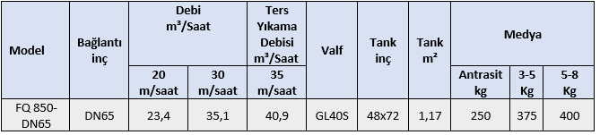 Watergold FQ 850-DN65 (48X72) Model Multi Medya Kum Filtreleme Sistemi-35.1 ton/saat