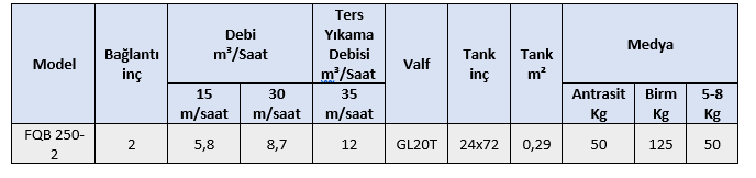Watergold FQB 250-2 (24X72)Model Kum-Demir Filtreleme Sistemi