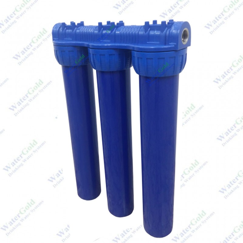 Daire Bina Girişi 20" Inç Üçlü (İplik/Spun/Blok Aktif Karbon) Koku Tortu Pislik Önleyici Su Arıtma Filtresi